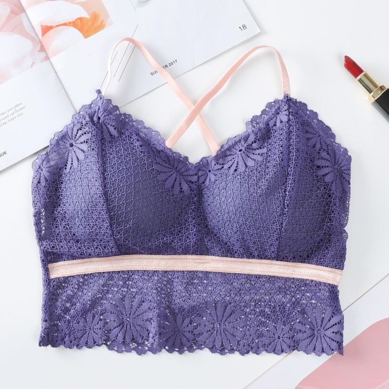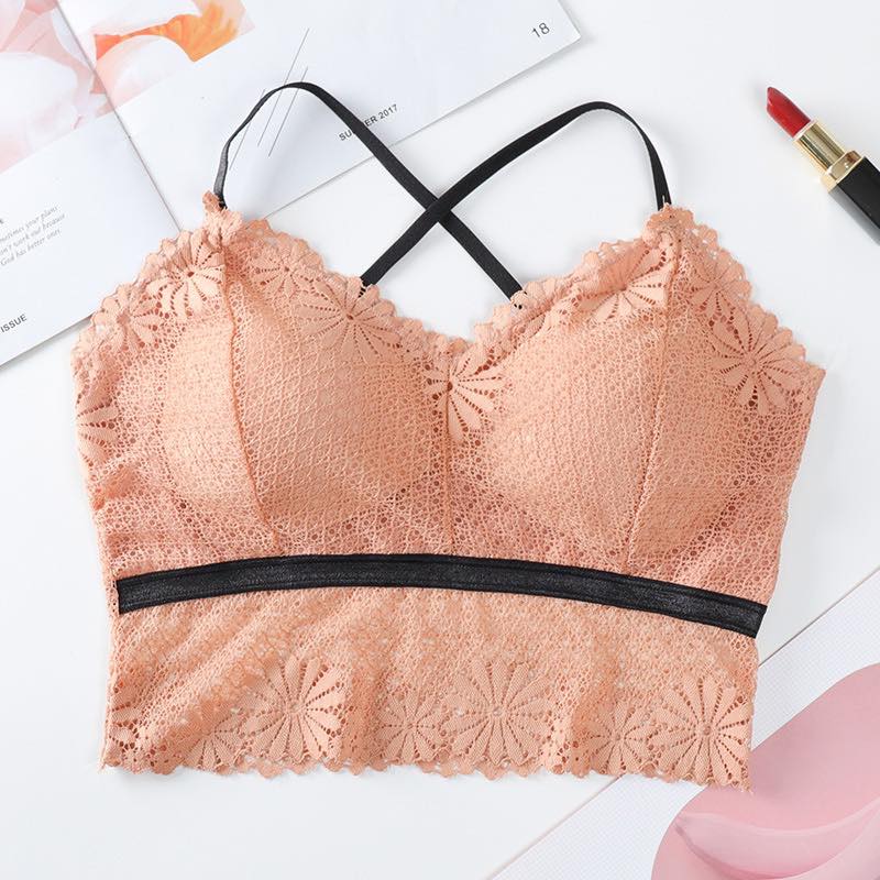 Bralette en encaje, con copa extraíble, sin aros metálicos y colores sólidos.
