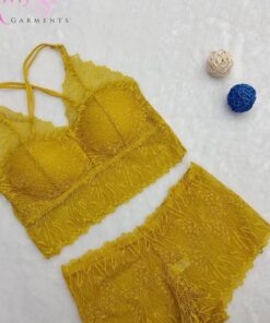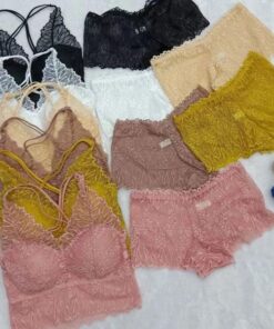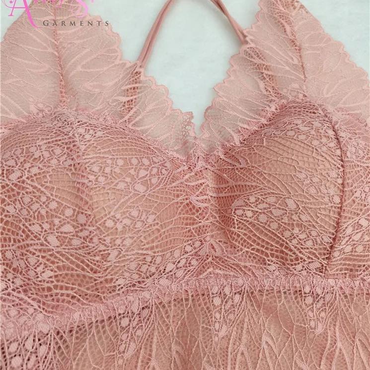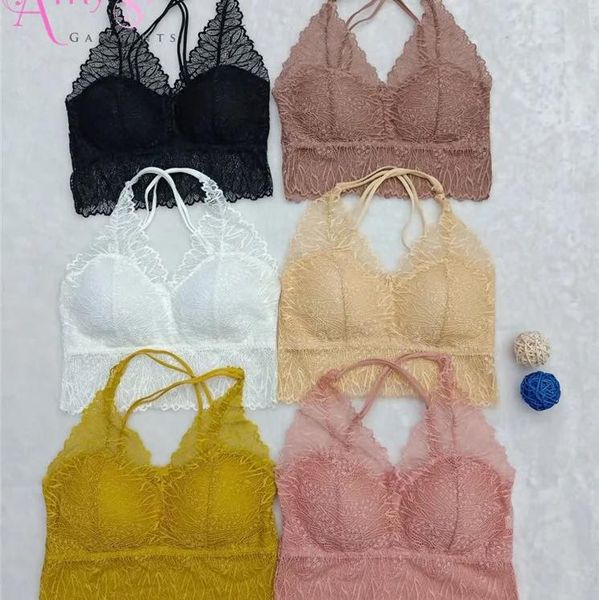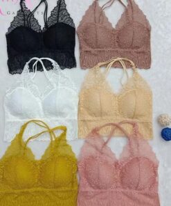 Bralette Crop Top Halter corto en encaje, con copas extraíbles firmes, sin aros metálicos y colores sólidos.